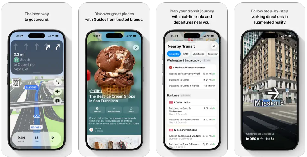 تقدم خرائط Apple خدمات دقيقة لتحديد المواقع، مما يساعد المستخدمين في الوصول إلى وجهتهم بسهولة. يتضمن ذلك إرشادات صوتية دقيقة وتوجيهات مفصلة تجعل الرحلات أكثر سلاسة. يضمن التطبيق تحديثات سريع وموثوقة لموقعك، سواء كنت في المدينة أو في المناطق الريفية.
